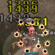 Haphazardly fire a Pistol to inflict between 0 and 10 strikes to each enemy within 7 cells around the caster with each individual hit being calculated separately. The closer you are to the target the greater the chance you will land more hits.