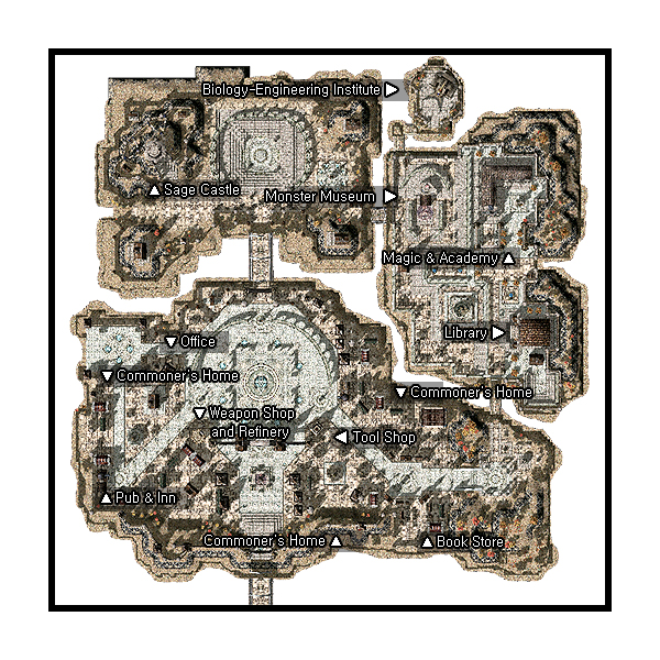 - Show in minimap: Armory, Tool Shop, Sage Castle, Street of Book Stores, Juphero Plaza, Library of the Republic, Schwicherbil Magic ;Academy, Monster Museum