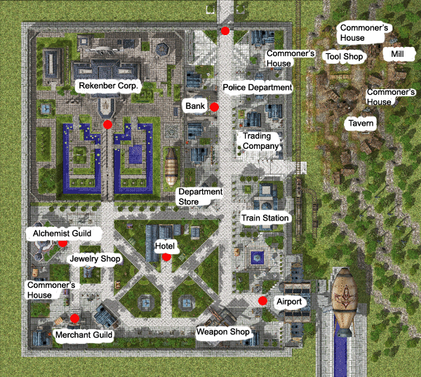 The city-state of Lighthalzen is divided into two districts, the residential district on the south side of the city and the commercial district on the north side. The residential district's main attraction is the world-renowned Rekenber Hotel, located in the center of the district. The commercial district contains an airship landing strip, the Lighthalzen Bank, various trading posts, and the Alchemist Guild House. More importantly, it houses the Rekenber Corporation Headquarters.