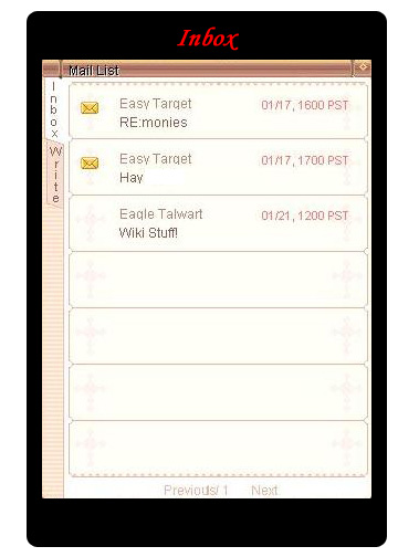 The Mailing System is a feature added of the Episode 10.4: Hugel update. It was deactivated on iRO for a time due to bugs, but returned to iRO when the Interface Renewal update occurred. It is currently disabled again on iRO because of a duping bug.
