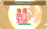 Only a Minstrel and a Gypsy can perform this ensemble. Sheltering Bliss creates a cell area centered around the caster where monsters or characters can't enter. If a character or a monster is inside the skill's range when it is casted, they will be pushed out.